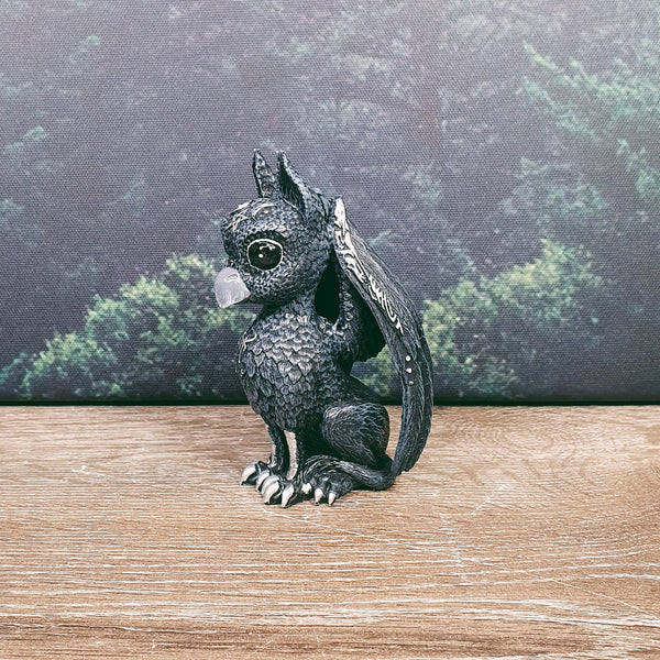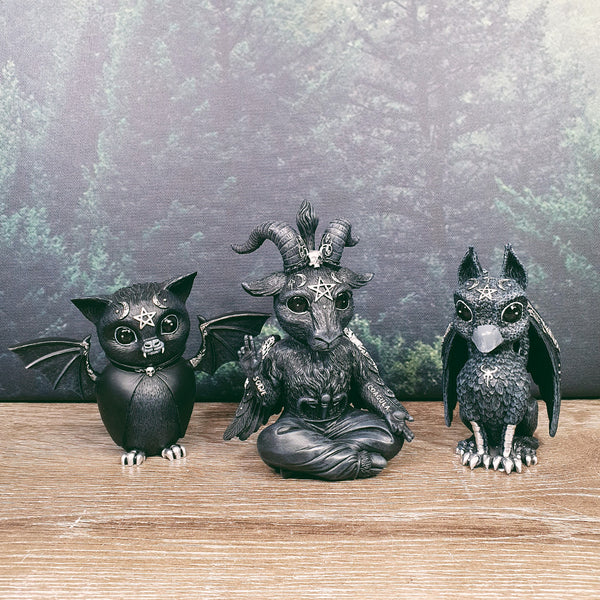 From the bewitching minds of Nemesis Nows in-house design team comes this adorable, wide-eyed, Griffael the griffin figurine. This strange creature is the union of good and evil. As you look into its black eyes you notice that all is not as it seems, darkness resides within. Featuring occult symbology and ornate silver detailing, this beautiful griffin gazes proudly out at all those who pass by.