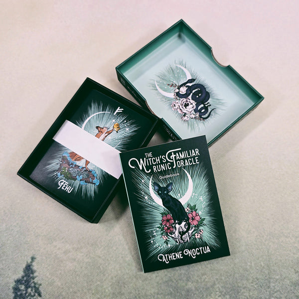 Author Athene Noctua provides a helpful introductory guide to the featured runes and their interpretations. Small enough to fit in a purse or pocket, this compact deck can travel with you, offering divine guidance wherever life may take you.