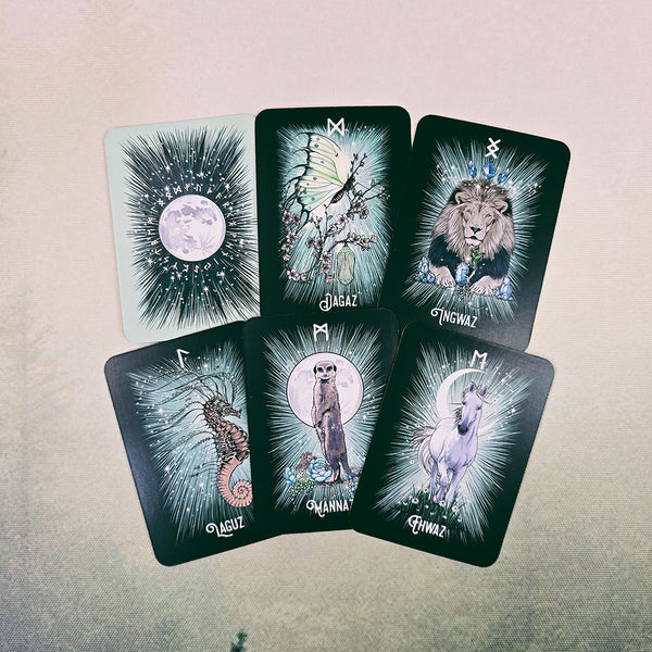 Enhance your divination practice with this 24-card pocket oracle deck featuring Nordic rune interpretations and majestic animal companions Owls, ravens, snakes, and other magical animals dance across these cards. Each animal embodies the meanings, qualities, and energies of the various runes they have been chosen to symbolise.